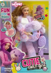 A WOOPIE ROYAL Emi baba elbűvöl puha, lila bárányjelmezével, stílusos kiegészítőivel és mozgatható végtagjaival. Ideális kreatív játékhoz, összebújáshoz és első styling élményekhez – minden kis divatrajongó kedvenc társa lesz.