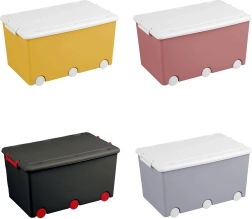 Tegyen rendet a gyerekszobában gyorsan és egyszerűen ezzel a tágas, kerekeken guruló játékdobozzal. 60 literes űrtartalommal, 57 × 36 × 29 cm-es mérettel és 6 kerékkel a könnyű mozgatáshoz rendelkezik. A két oldalsó patentos zárásnak köszönhetően biztonságosan tárolja a játékokat, könyveket és apróságokat. A doboz minősített, kiváló minőségű műanyagból készült, és stócolható a helytakarékosság érdekében.