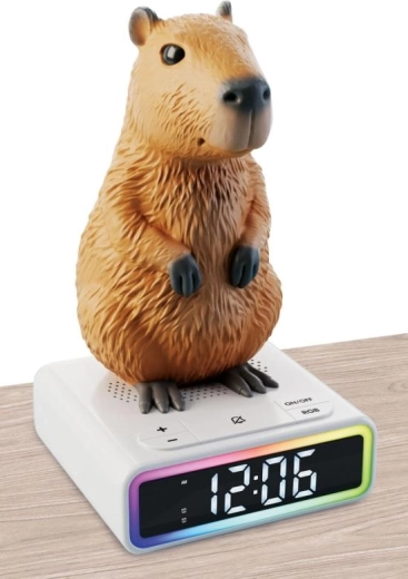 Tegye szórakoztatóvá az ébredést. Ez a stílusos, kapibara mintás ébresztőóra színes LED háttérvilágítással rendelkezik, amely fokozatosan változik, valamint széles dallamválasztékkal, hogy minden reggel kellemesebb legyen. Az áttekinthető kijelzőnek köszönhetően gyorsan leolvasható az idő és az ébresztés beállítása.