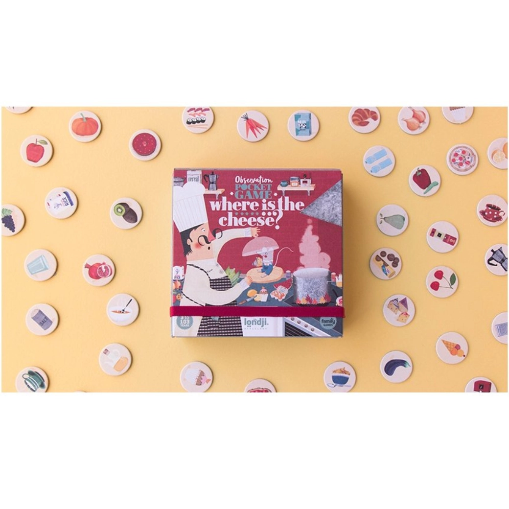Szórakoztató zsebjáték a LONDJI márkától gyerekeknek és felnőtteknek, amelyben a többiek előtt kell megtalálni a sajtot. Ideális utazáshoz, kávézóba vagy családi estékhez. Egyszerű szabályok, gyors körök és rengeteg nevetés az izgalmas keresgélésnek és a fürge szemeknek köszönhetően. Kompakt csomagolás, gyors játékmenet és a figyelem fejlesztése – remek ajándék ez a játék.