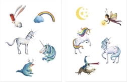 Varázsold szebbé a napot mesés motívumokkal! Unikornisok, szivárványok és csillogó fantázia tesznek minden pillanatot vidámmá – könnyen felvihetők, és remekül mutatnak a gyerekek bőrén.