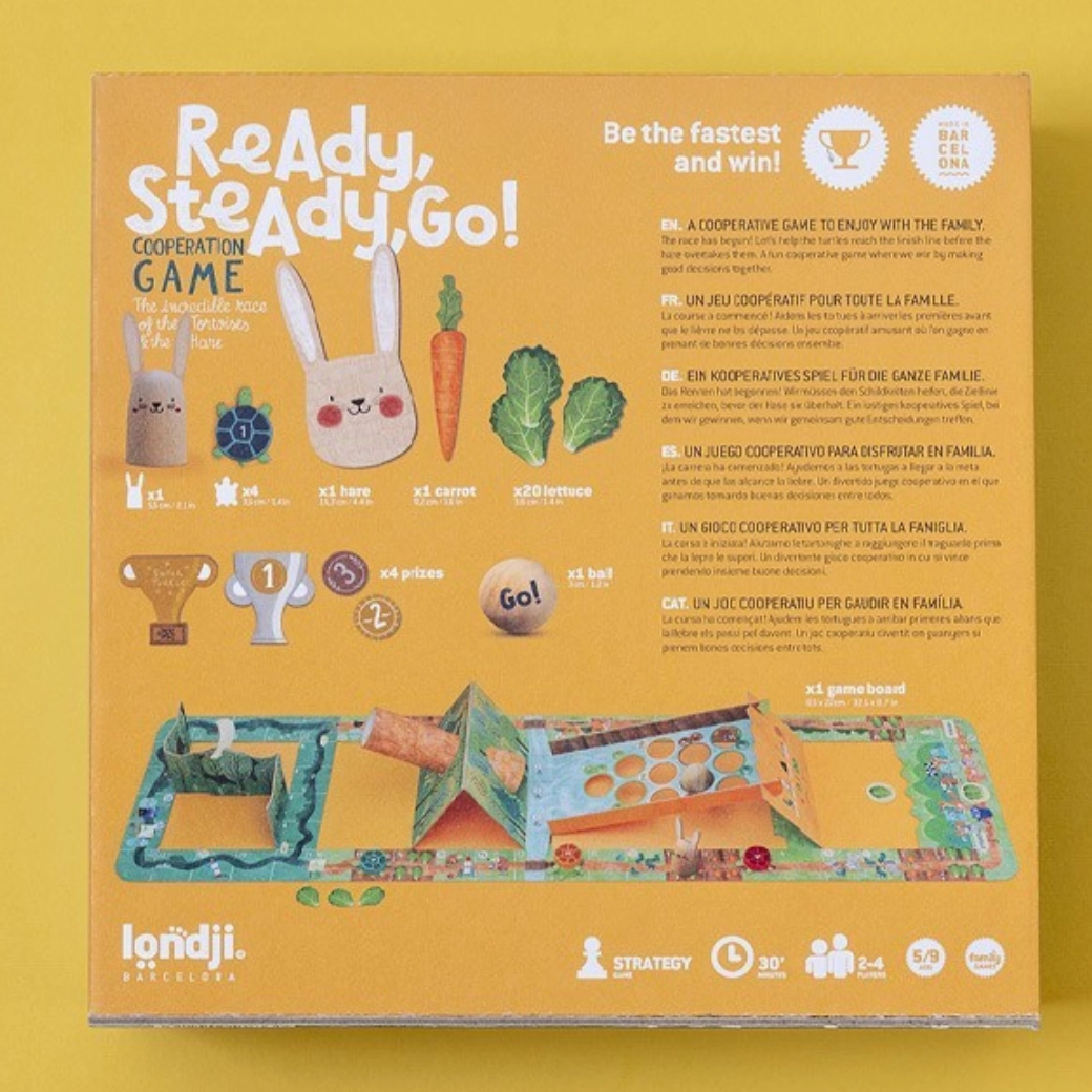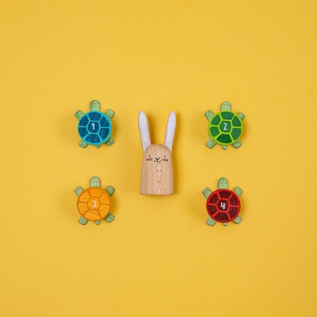 Családi társasjáték, amelyet a teknős és a nyúl meséje ihletett, és izgalmas párharcot hoz, ahol a gyorsaság és a türelem egyaránt dönt. Élvezd az egyszerű szabályokat, a gyönyörű illusztrációkat és a szórakozást gyerekeknek és felnőtteknek a célba vezető verseny során.