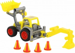 A traktor gumis kerekekkel van felszerelve a halk és egyenletes haladásért. A lapát és a markoló könnyen kezelhető, fejleszti a finommotorikát, a képzelőerőt és a koordinációt. A csomagban 4 bóját is talál a munkaterület kijelöléséhez és saját játékszcenáriók kitalálásához.