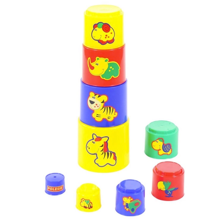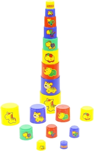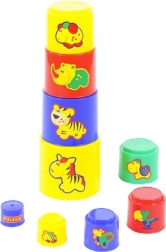 Ez a színes pohárkészlet lehetővé teszi, hogy a gyerekek a poharakat egymásra rakva magas tornyot építsenek, vagy egymásba helyezzék őket. Minden darab könnyű, kellemes tapintású és aranyos állatkákkal díszített, ami újra és újra játékra és felfedezésre ösztönöz.