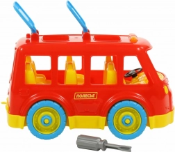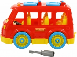 A csomag részét képezi egy praktikus csavarhúzó, amellyel a busz könnyen szétszedhető és újra összerakható. A játék meghajtás nélküli, biztonságos, és minőségi anyagokból készült a hosszú élettartam és a biztonságos játék érdekében.