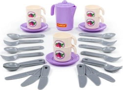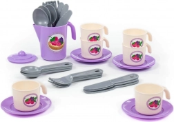 Az elegáns Anuta teáskészlet 6 személyre örömet szerez a kis házigazdáknak és a teázós szerepjátékok szerelmeseinek. Tartalmaz 6 csészét, 6 tányért, teáskannát fedővel és evőeszközöket – mindezt kompakt csomagolásban. Ideális gyerekjátékhoz, a fantázia és a társas készségek fejlesztéséhez.