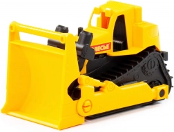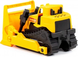 A munkakanál emelhető, süllyeszthető és állítható dőlésszögű, így a gyerekek könnyedén rakodhatnak és mozgathatnak homokot vagy apró játékokat. A négy kerék gondoskodik a gördülékeny haladásról, amelyeket okosan a lánctalpak imitációja mögé rejtettek, élethű megjelenést kölcsönözve a bulldózernek.