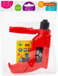 A ravasz megnyomására a fúrófej felpörög, így a gyerekek élethűen játszhatnak kis ezermestereket.