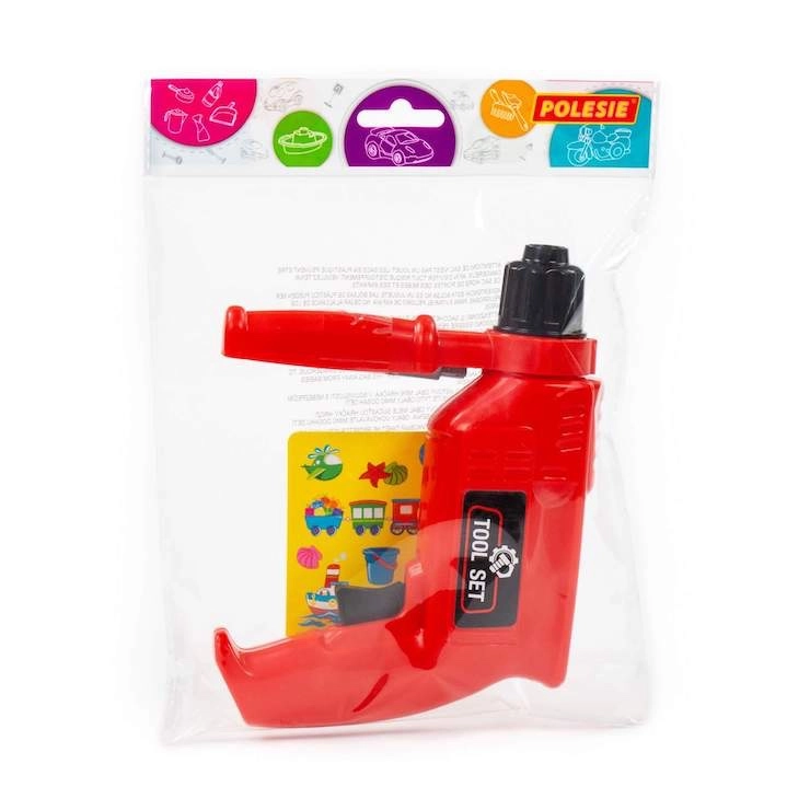 Az ergonomikus forma fő markolattal és első segédmarkolattal megkönnyíti a kétkezes tartást. A ravasz megnyomására a fúrás imitációja biztonságosan elindul, és a gyerekek különféle játékszcenáriókat találhatnak ki. A tartós műanyag kivitel könnyű és gyerekbarát.