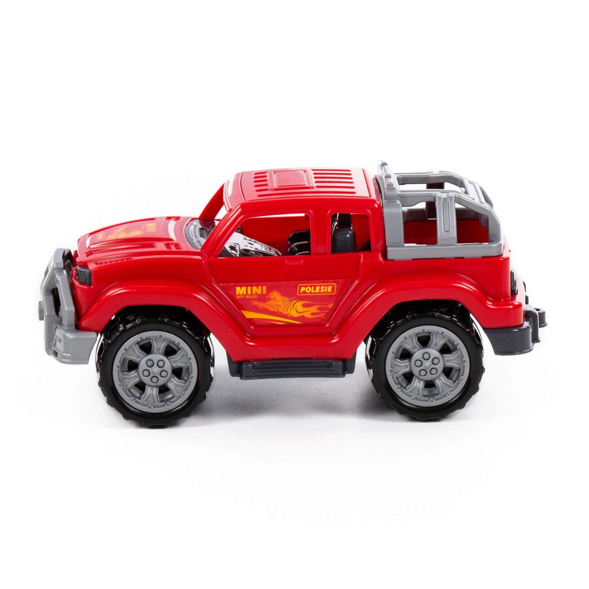 Nagy kerekek, első védő lökhárító és részletes karosszéria az autentikus off-road megjelenésért és számtalan játékszcenárióért.