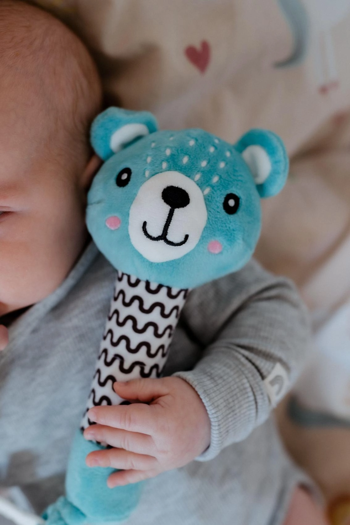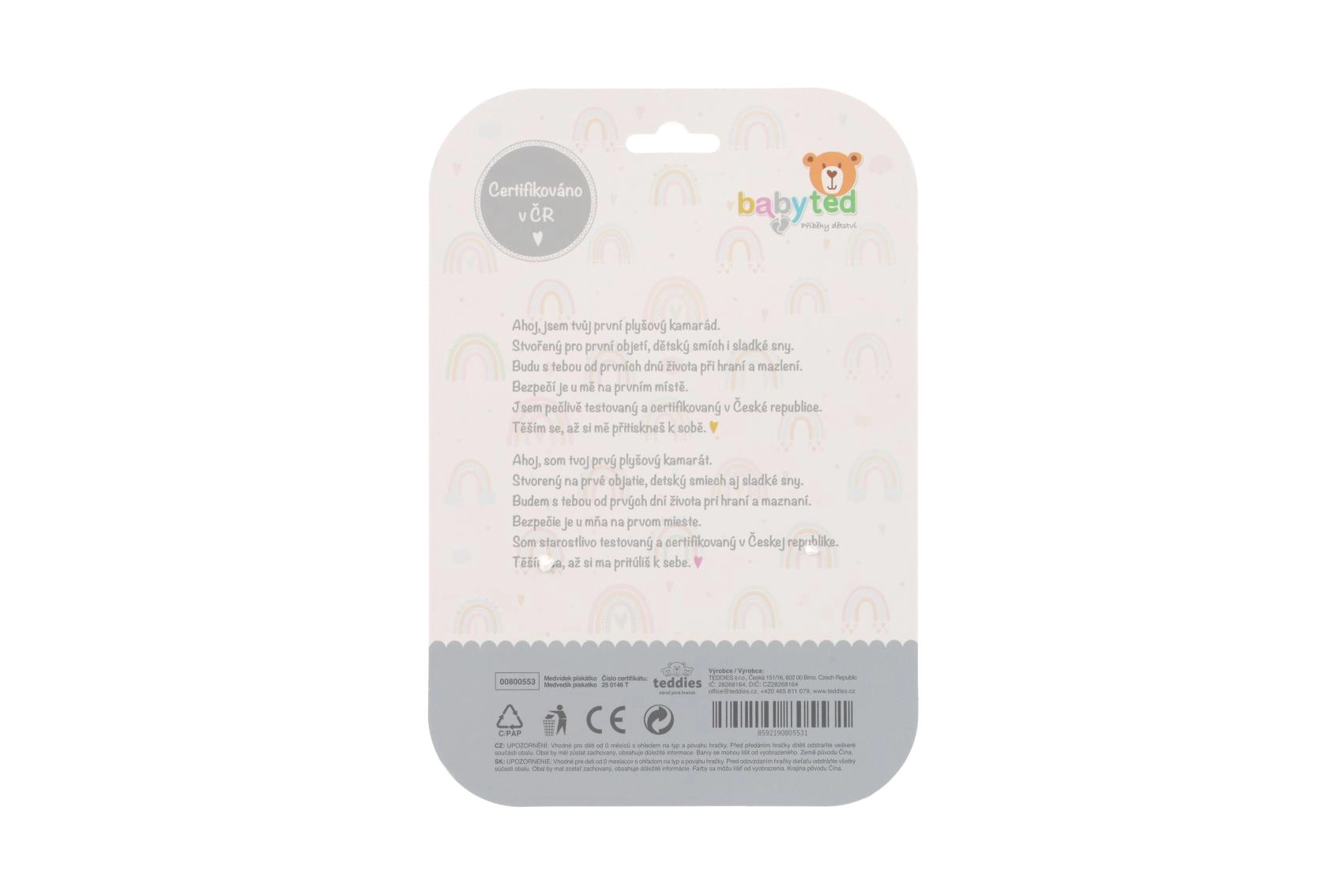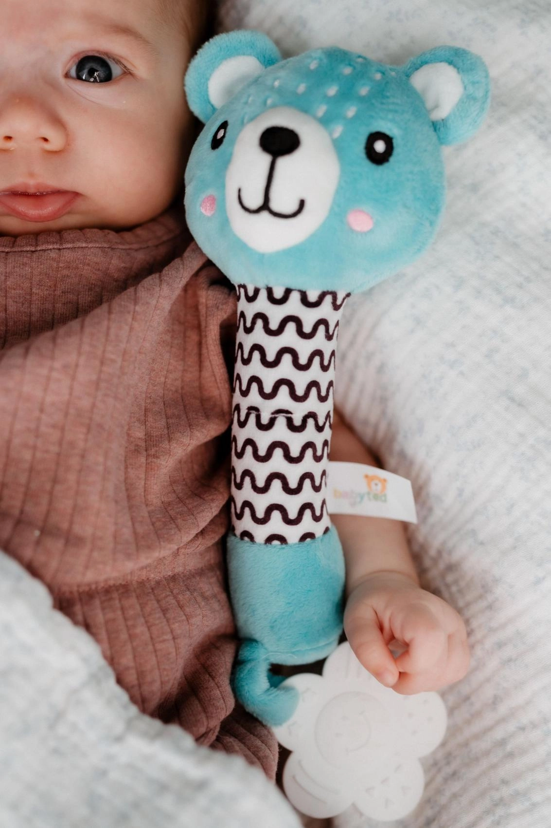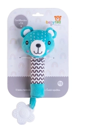 A BABYTED aranyos plüss sípoló macija ideális első játék 0 hónapos kortól. A hosszú, puha fogórésznek köszönhetően könnyen tartható a kis kezekben, megnyomásra finoman sípol, és fejleszti a hallást. A végén puha, virág alakú rágóka segít megkönnyíteni az érzékeny ínyek számára az időszakot. A puha, biztonságos plüss és a kontrasztos minták támogatják a látást és az érzékelési fejlődést. A játék tanúsított Magyarországon, és megfelel a szigorú biztonsági előírásoknak.
