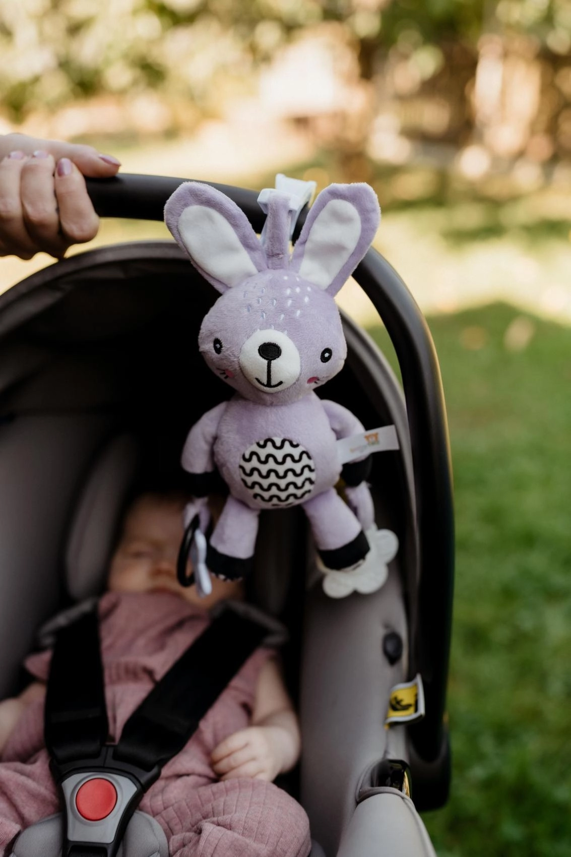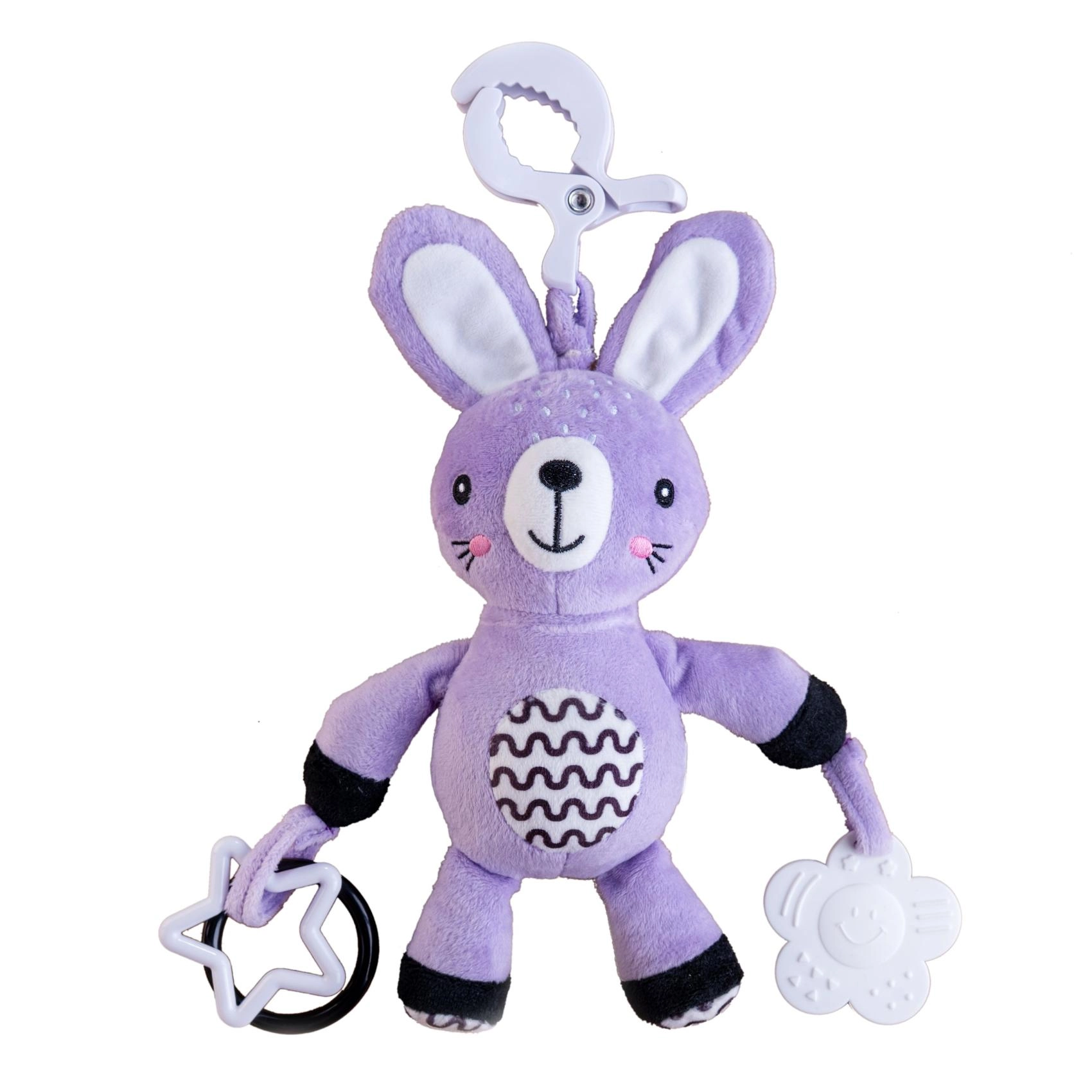 Praktikus klip a gyors felhelyezéshez babakocsira, autósülésre, kiságyra vagy játszóhídra – szórakozás és megnyugtatás mindig kéznél, bárhol, bármikor.