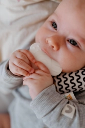 A puha, virág alakú rágóka gyengéden masszírozza az érzékeny ínyt, és segít az első fogacskák kibújásakor.