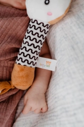 A hosszú, puha test jól megfogható az apró kezekkel, a fekete-fehér minta pedig támogatja a babák vizuális észlelését.