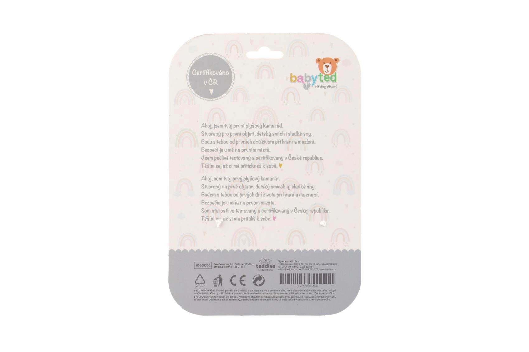 A bájos plüss sípoló és rágóka őzike formában ideális első játék már újszülött kortól. A puha test könnyen tartható az apró kezecskékben, nyomásra finom sípoló hangot ad a hallás fejlesztéséhez, a végén pedig virág alakú rágóka található, amely megkönnyebbülést nyújt az érzékeny ínynek. A kontrasztos fekete-fehér minta támogatja a vizuális észlelést, a biztonságos, selymes anyagok pedig 0 hó+ kortól alkalmasak.
