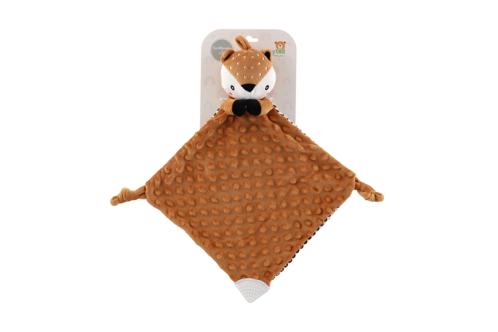 A kendő sarkába varrt puha rágóka segít a fogzás idején, és biztonságos rágcsálást kínál a nap bármely szakában.