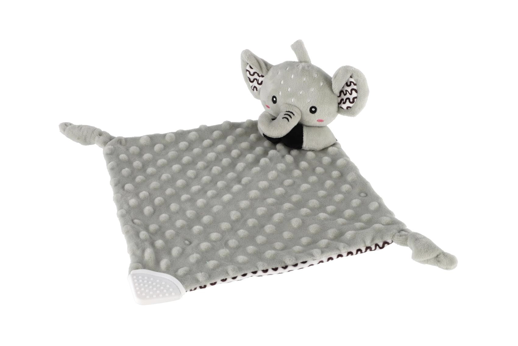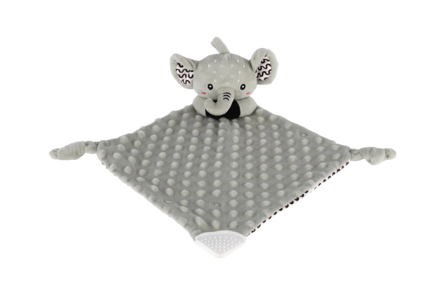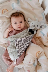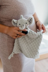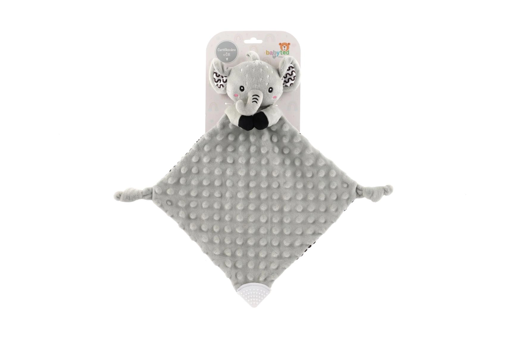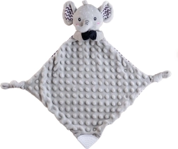 Puha alvókendő elefánt formában a BABYTED márkától, amely a babának biztonságérzetet és nyugodt alvást nyújt. A selymes minky anyag 3D pöttyökkel ölelgetésre hív, a rejtett finom csörgő fejleszti a hallást, a puha szilikon rágóka pedig megkönnyebbülést hoz a fogzás időszakában. Újszülött kortól alkalmas, tanúsítva Magyarországon.