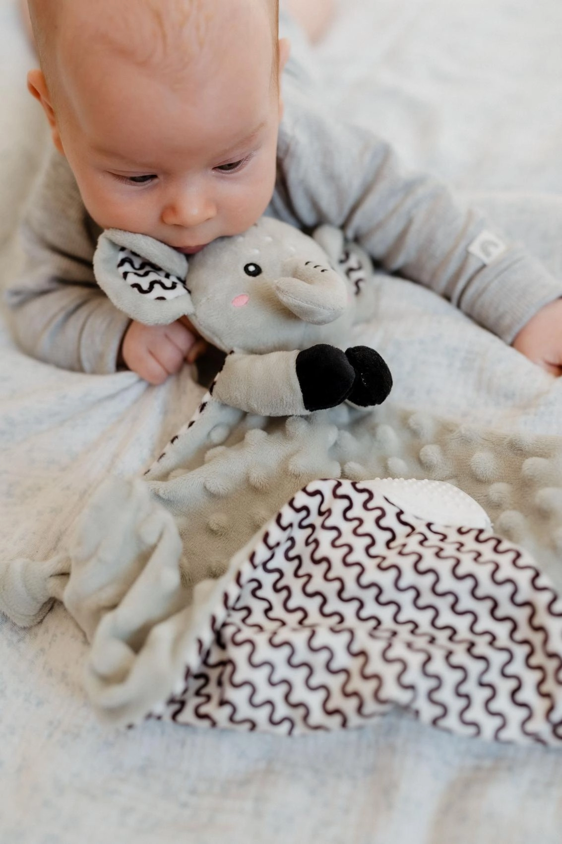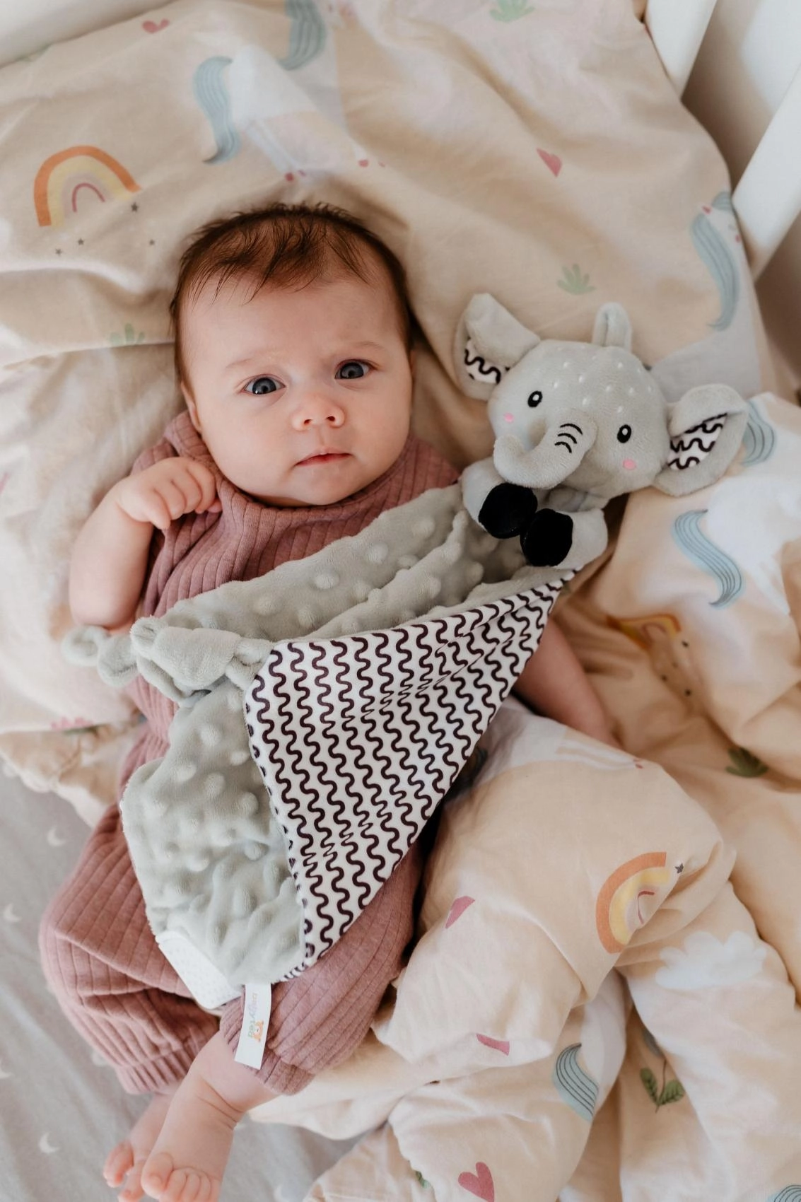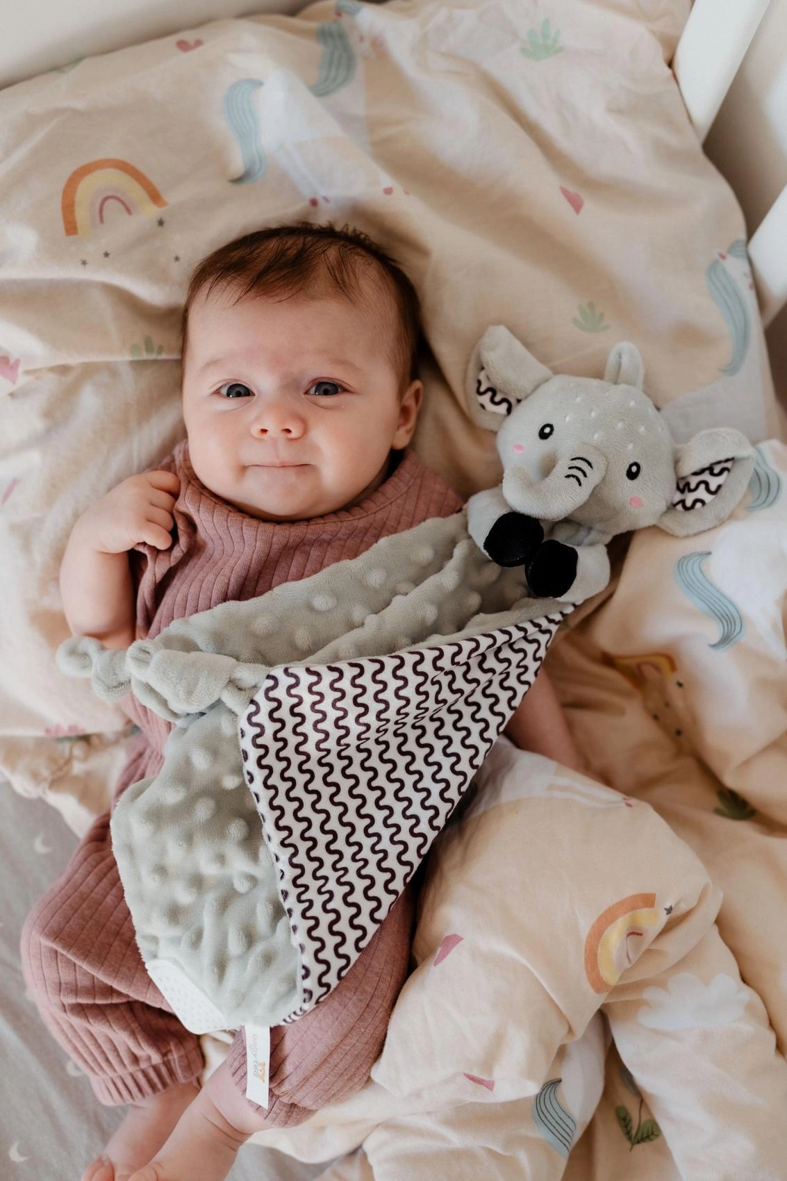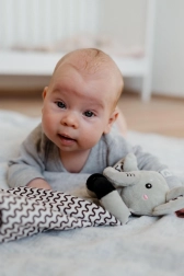 Puha alvókendő elefánt formában a BABYTED márkától, amely a babának biztonságérzetet és nyugodt alvást nyújt. A selymes minky anyag 3D pöttyökkel ölelgetésre hív, a rejtett finom csörgő fejleszti a hallást, a puha szilikon rágóka pedig megkönnyebbülést hoz a fogzás időszakában. Újszülött kortól alkalmas, tanúsítva Magyarországon.
