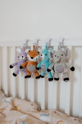 A praktikus klip lehetővé teszi a nyuszika gyors rögzítését babakocsira, kiságyra, autósülésre vagy tornabotra – mindig kéznél otthon és útközben.
