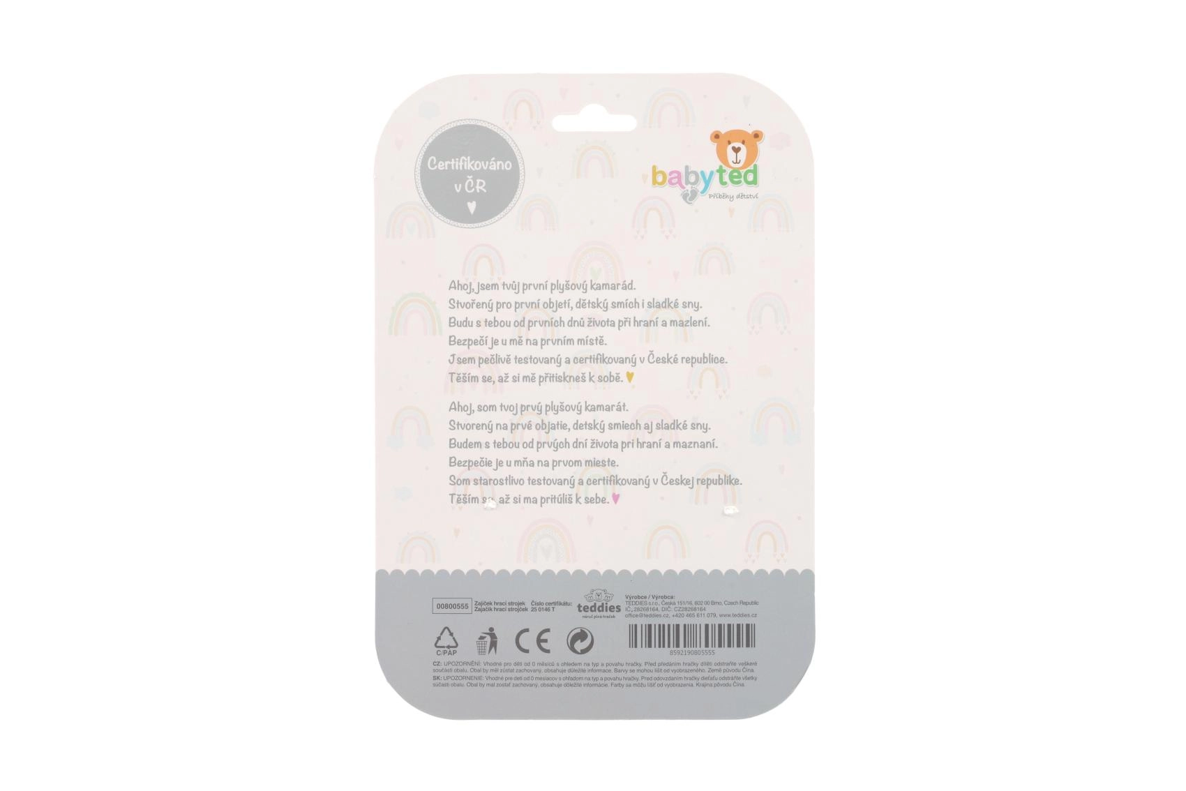 A pihe-puha plüss szinte hívogat az ölelésre, míg a kontrasztos részletek és a finoman zizegő fülecskék támogatják a látás és a finommotorika fejlődését. A minőségi kivitelezés és a magyarországi tanúsítás biztonságos használatot garantál már újszülött kortól.