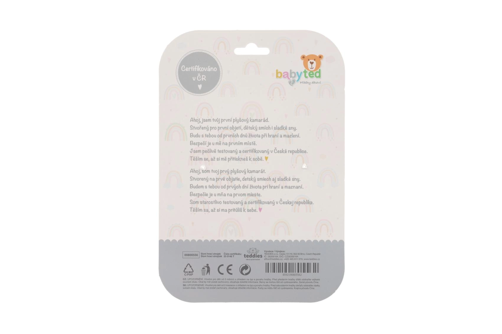 A selymes anyag kellemes az apró kezeknek, a füleken és a pocakon lévő fekete-fehér minták pedig támogatják a korai látásfejlődést.
