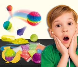 Az I'M A GENIUS – Szokatlan labdák készlet az otthoni kísérletezést izgalmas játékká változtatja. A gyerekek mindent megkapnak, amire szükségük van saját pattogó labdáik elkészítéséhez, amelyek a speciális adalékoknak köszönhetően akár világítanak a sötétben. Az elkészítés minden lépése egyszerű és biztonságos, így a kezdők is bátran belevághatnak.