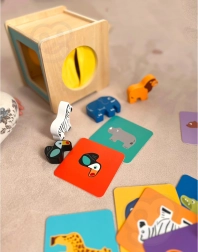 A gyerekek fa elemekkel és kártyákkal gyakorolják a színeket, formákat és az állatok felismerését. A játék fejleszti a logikát, a koncentrációt és a kéz–szem koordinációt.