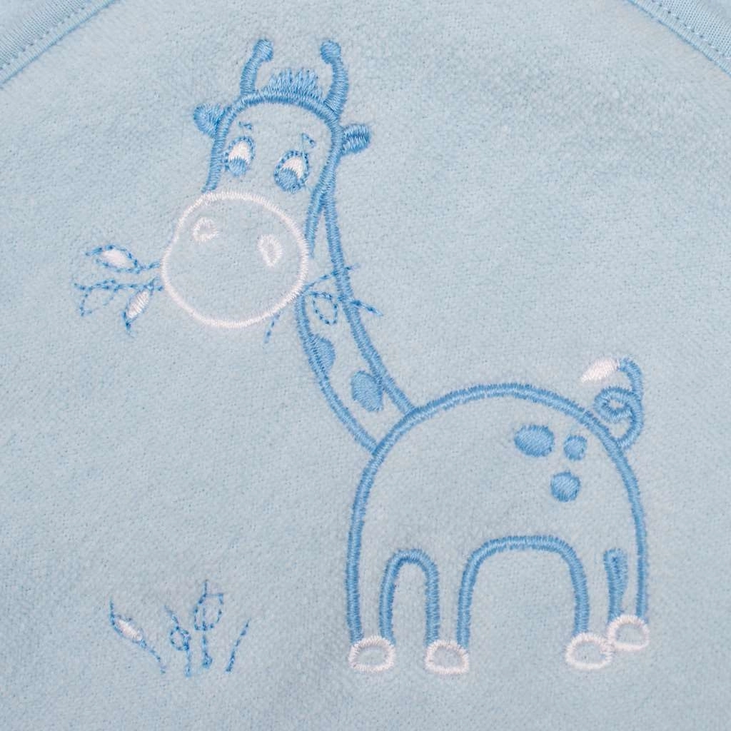 Puha kapucnis gyermek frottír törölköző, ideális újszülötteknek és nagyobb gyerekeknek. Remekül melegít fürdés után, gyorsan szárad, kiválóan nedvszívó, a kapucni pedig védi a fejecskét a hidegtől. Vidám zsiráf hímzés díszíti.