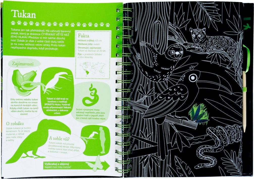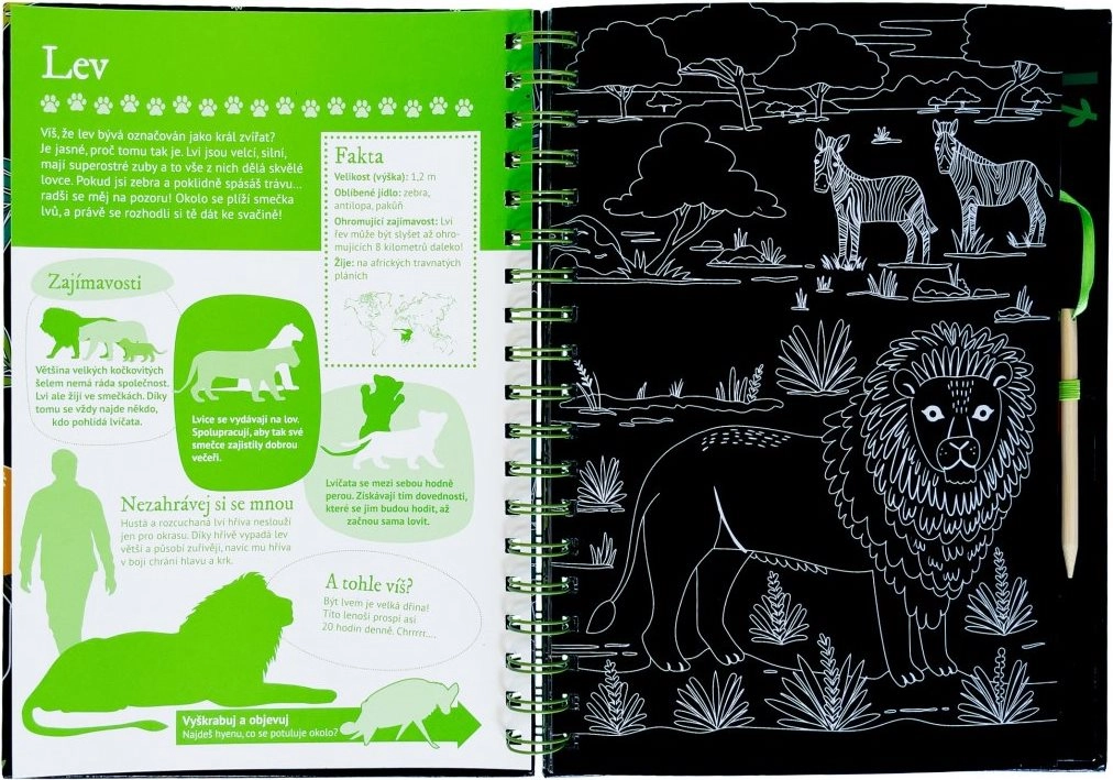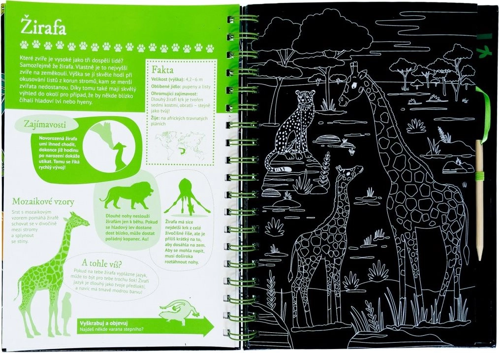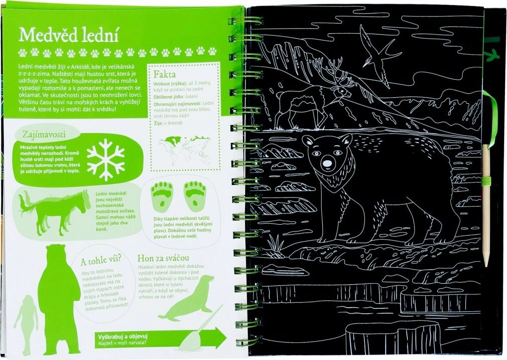 Ez a ötletes könyv két részre oszlik – az első rész átfogó állatbemutatót kínál számos érdekességgel és ténnyel, melyeket kapargatható képek egészítenek ki, játékos élményt nyújtva a gyerekeknek. A második rész interaktív feladatokat tartalmaz, mint például kvízek, párosítás, keresgélés, rajzolás és kiegészítés, amelyeknek köszönhetően a gyerekek gyakorolhatják frissen szerzett tudásukat, és hosszú időre leköthetik magukat.