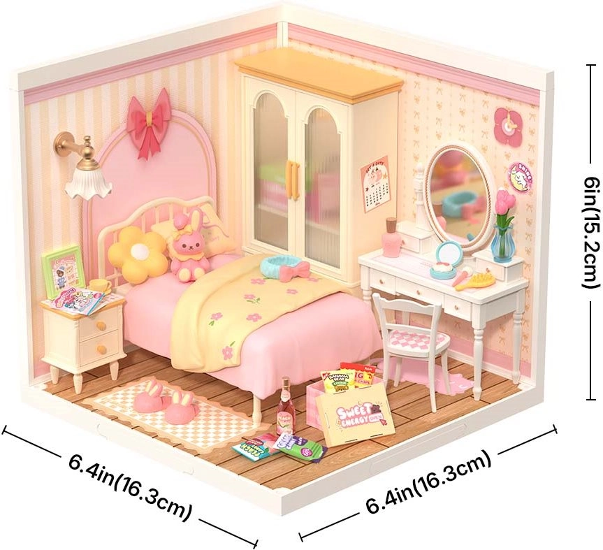 Alkossa meg saját kis nyugalmát a Rolife miniatűr hálószobájával. Ez a részletgazdag DIY készlet otthonos dizájnt, meleg fényű LED világítást és 105 elemet kínál kreatív építéshez és dekoráláshoz. Ideális ajándékötletként, stílusos lakáskiegészítőként és pihentető kreatív hobbiként is.
