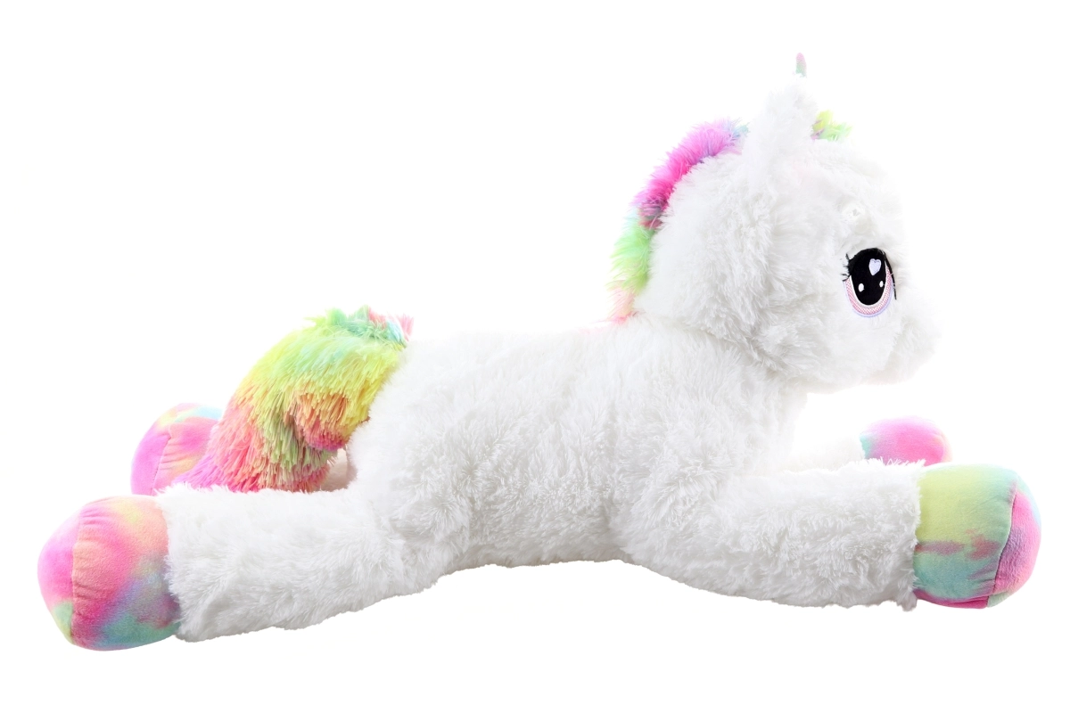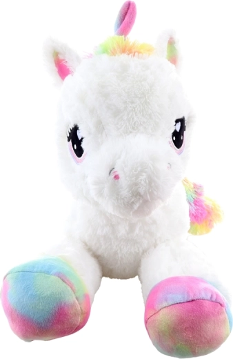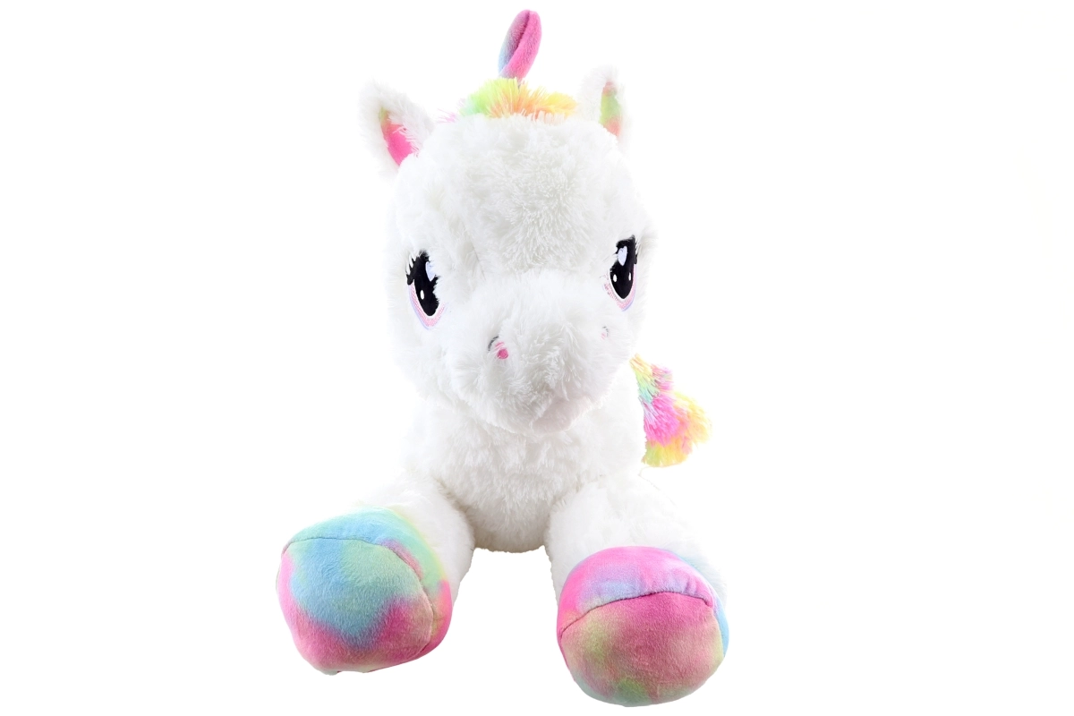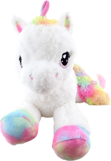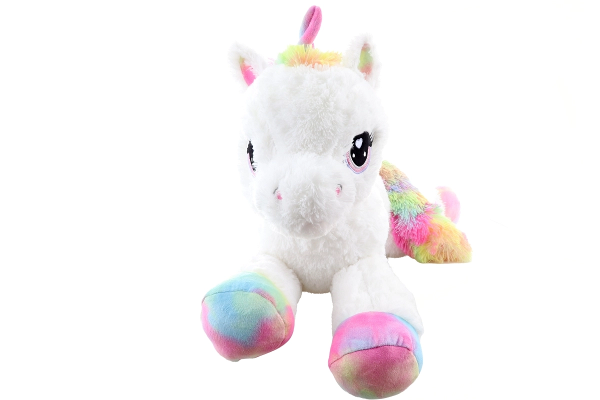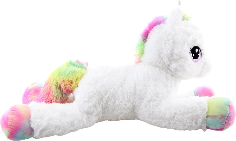A 80 cm hosszú, aranyos plüss unikornis a gyerekeknek és felnőtteknek egyaránt örömet szerez. Rendkívül puha, kellemes tapintású, és ideális ölelgetésre. A színes, szivárványos részletek varázslatos megjelenést kölcsönöznek a játéknak, a nagy hímzett szemek és a finom kidolgozás pedig biztonságos használatot 0+ kortól garantálnak.