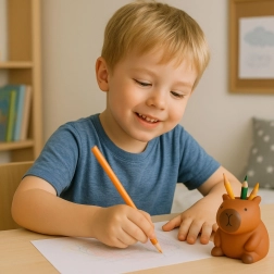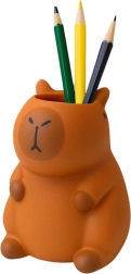 Ez a dekoratív, kapibara alakú rendező minőségi dekoratív anyagból készült matt felülettel és meleg barna árnyalattal. Lekerekített vonalai barátságos megjelenést kölcsönöznek, kiválóan illik modern és meghitt enteriőrökbe egyaránt. A felső nyílás/oszlop átlátható tárolást tesz lehetővé írószereknek, ecseteknek vagy apróságoknak.