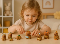Minden kapibara saját karakterrel bír – gyümölccsel, csillaggal, TV sisakkal, hátizsákkal, fejhallgatóval vagy teknőssel a hátán. Ideális a teljes sorozat összeállításához.