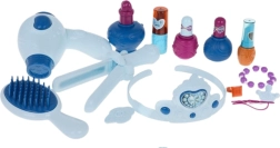 - fésülködőasztal, szék, hajszárító, kefe, hajvasaló, 2 körömlakk, 2 rúzs, karkötő, 2 gyűrű, korona, „parfüm”, 2 hajcsat, dekoratív matricák