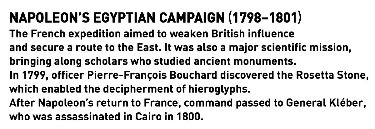 Jean-Baptiste Kléber tábornok, Pierre-François Bouchard hadnagy és a mameluk szablyával, gazdagon részletezett egyenruhákkal támogatják a történetmesélést és a tanulságos jeleneteket.