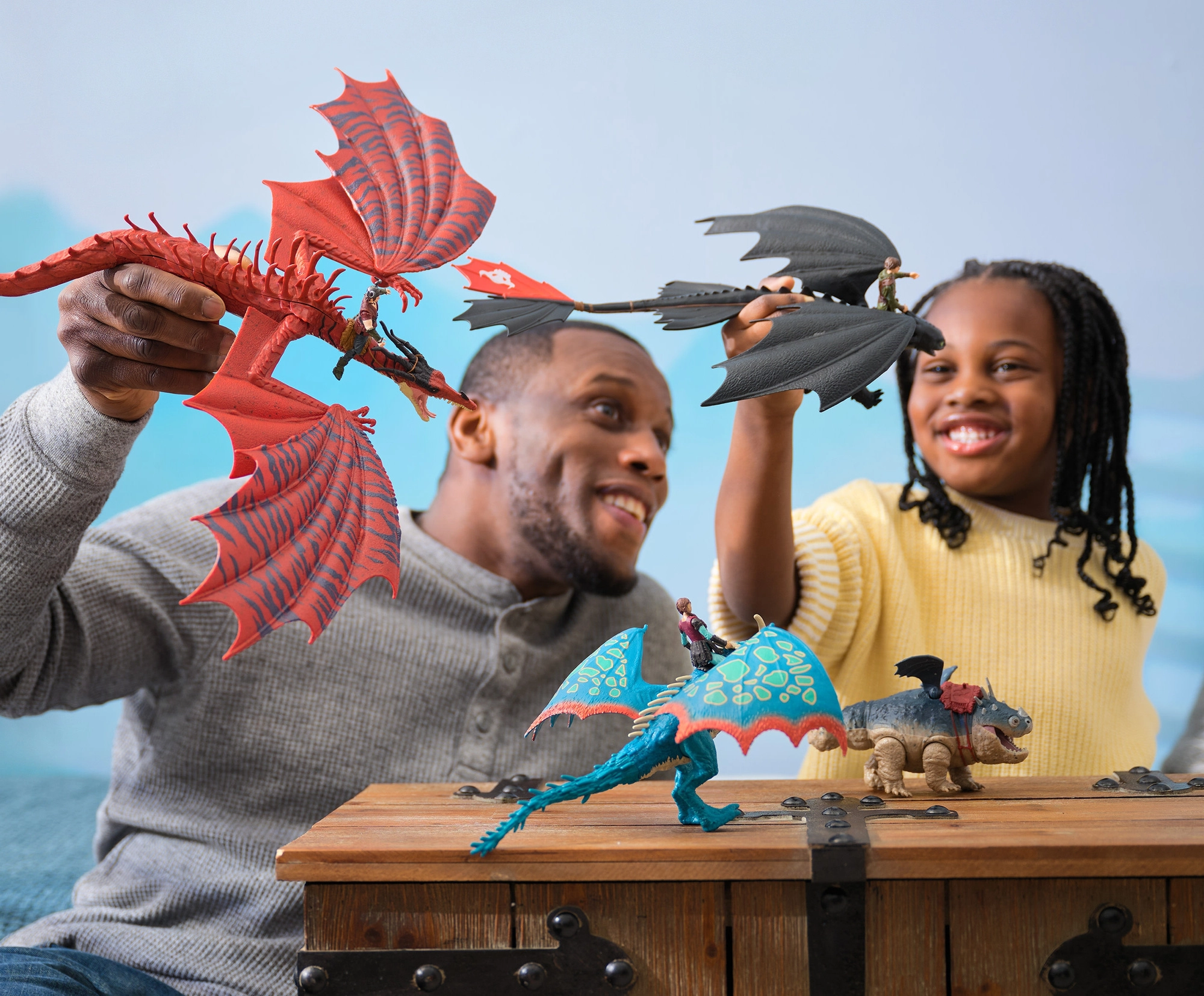 Fogatlan, Deadly Nadder, Gronckle és Monstrous Nightmare csuklós artikulációval és realisztikus szárnytextúrával az akciós repüléshez és harci jelenetekhez.
