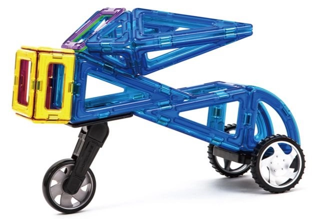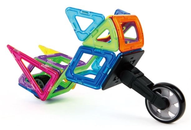 A MAGFORMERS építőkészlethez való kiegészítő motoros kerék kibővíti a kerekek palettáját az egyedi modellek megalkotásához. Az elem gyors és egyszerű becsattintásra készült a MAGFORMERS négyzetbe, így a gyerekek azonnal új változatokat építhetnek egy nyomon haladó járművekből és háromkerekűekből.