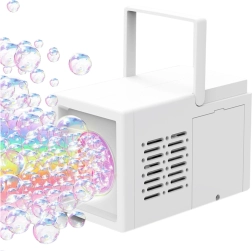 A 10 fúvókának köszönhetően folyamatos szivárványszínű buborékáramot hoz létre, és pillanatok alatt varázslatos hangulatot teremt. A kezelés rendkívül egyszerű: töltse be az oldatot, kapcsolja be, és hagyja, hogy a buborékok táncoljanak a levegőben. A kompakt méret megkönnyíti a tárolást és a szállítást.