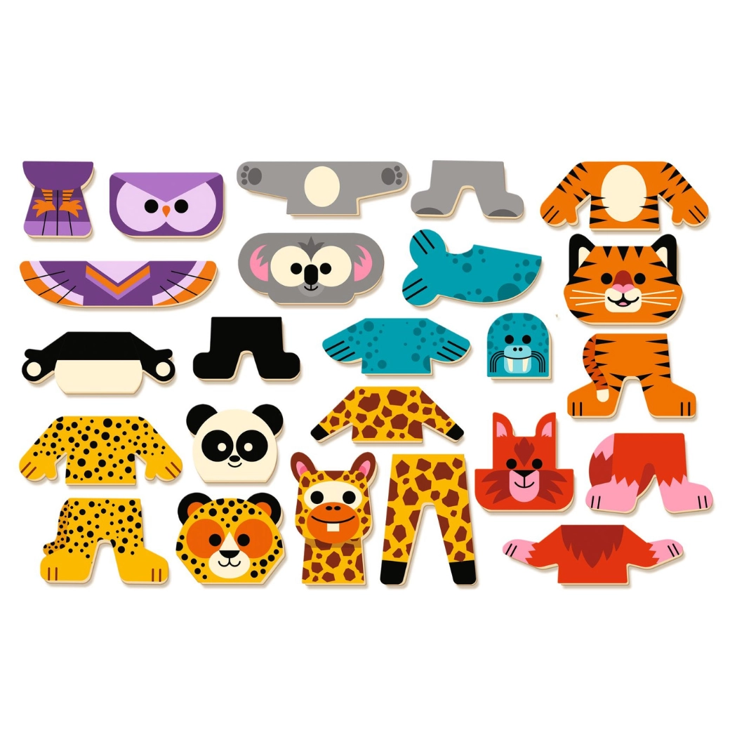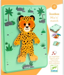 A Djeco Inzebox Mix and Match egy egyedi mágneses kirakó, amely lehetővé teszi a gyerekek számára, hogy különböző állatok fejeit, testeit és lábait kombinálják. Egyetlen készletből tucatnyi vidám variáció születik – a gepárdtól a bájos pandáig. A játék fejleszti a kreativitást, a szem–kéz koordinációt és a finommotorikát.