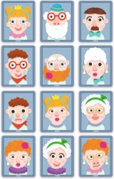 Különféle frizurák, szemüvegek és szakállak ösztönzik a képzeletet, miközben a pontos elemelhelyezés gyakorlása fejleszti a fogást és a kéz–szem koordinációt.