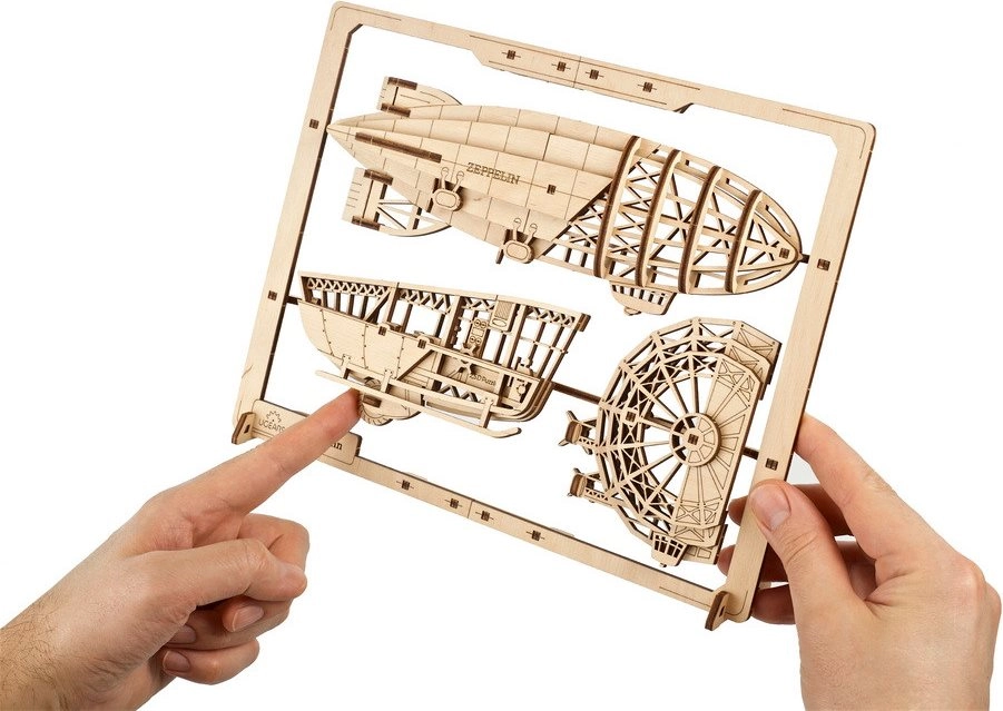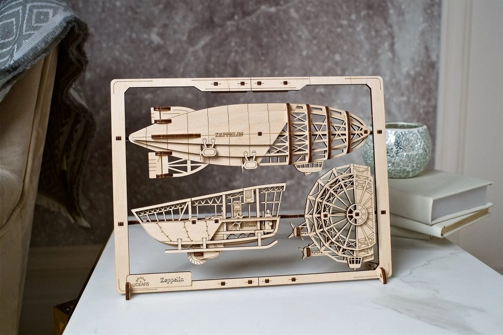 A UGEARS Zeppelin 2,5D fa 3D puzzle a hagyományos anyagot mechanikus mozgással ötvözi. Az építés intuitív és szórakoztató – az elemek pontos lézervágással készülnek, könnyen kipattinthatók a lapokból, így az összeszereléshez nincs szükség ragasztóra. Összeállítás után egy részletgazdag léghajómodellt kap gondolával és légcsavarral, amely egyedi dekoráció és oktatási segédeszköz is lehet.