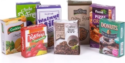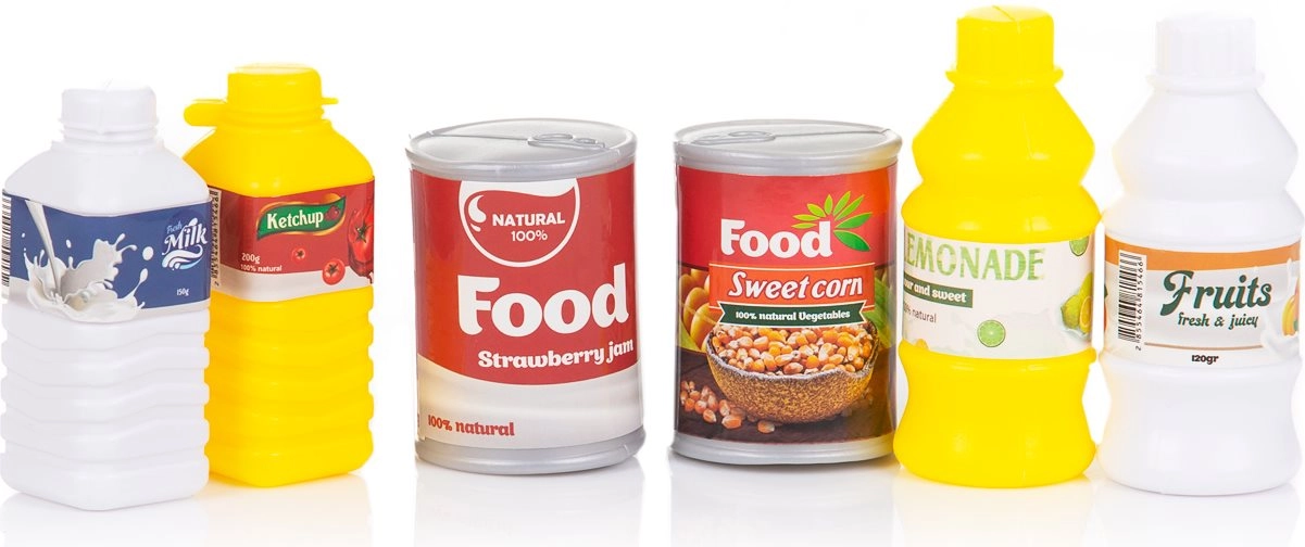 Papírdobozos élelmiszerek, gyermek palackok és konzervdobozok adják meg a játék hitelességét – ideális bevásárlólisták összeállításához és az élelmiszerek válogatásához.