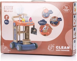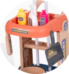 A CHIPOLINO gyermek takarítókocsi remek módja annak, hogy a gyerekeket önállóságra és felelősségtudatra neveljük. A kompakt, kerekes kocsi kényelmes fogantyúval minden tartozékot elnyel, és megkönnyíti a lakáson belüli szállítást. A valósághű kiegészítők, mint a csavarós vödör, a seprű, a kis seprű és lapát, illetve a „tisztításhoz” való permetező minden takarítást szórakoztató játékká tesznek.
