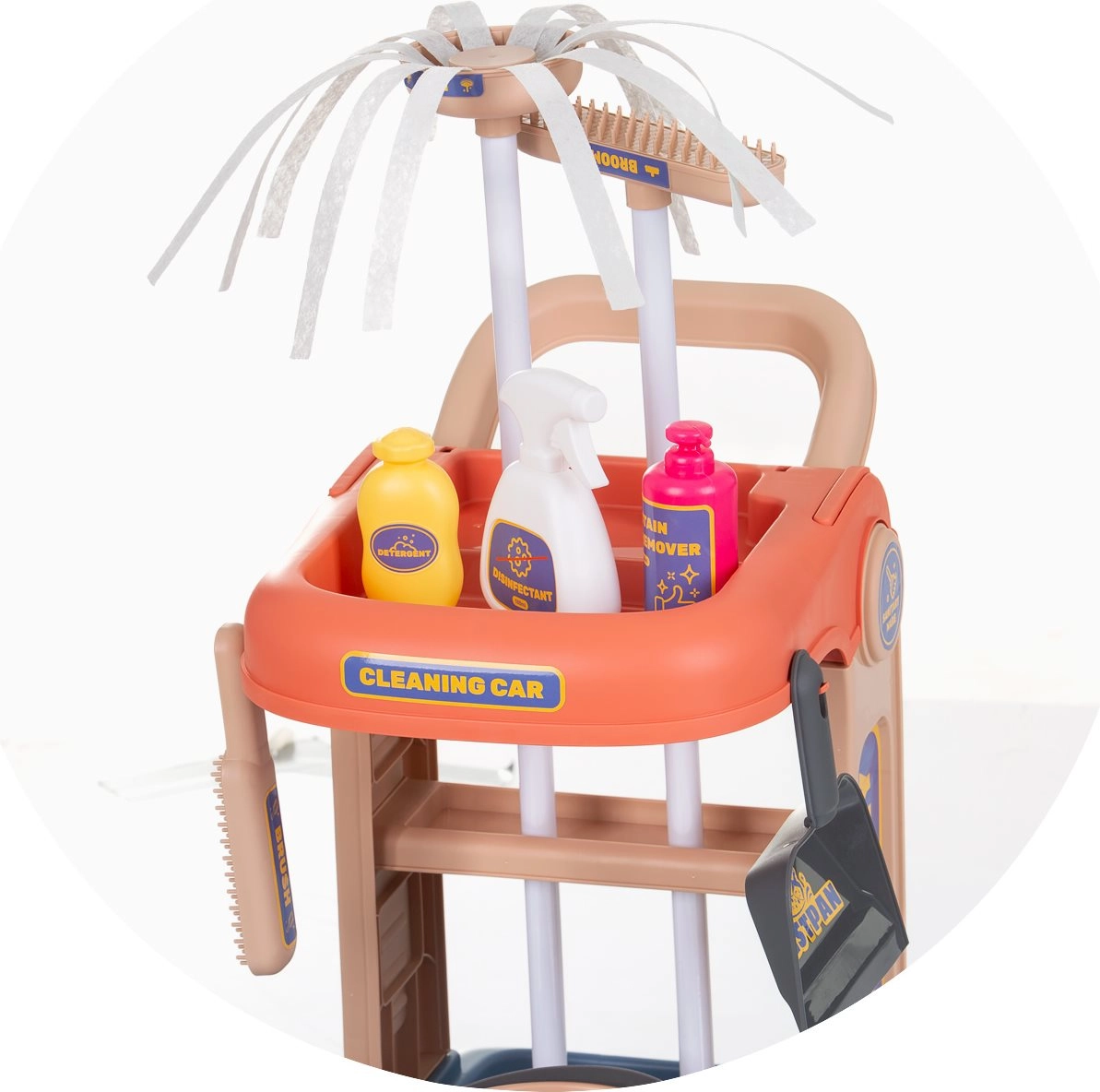 A gyerekek imádják utánozni a felnőtteket. A permetezőknek, kefének, kis seprűnek és lapátnak köszönhetően autentikus takarítást élhetnek át, és játékosan tanulják a felelősségvállalást.