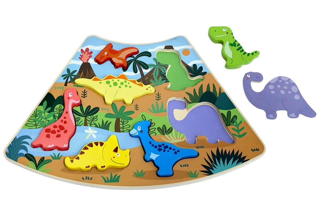 Ez a fa betétes dinoszaurusz puzzle tökéletes az első kirakásokhoz. A vastag, sima darabok könnyen megfoghatók, a gyerekek a megfelelő formákba illesztik őket, miközben gyakorolják a szem–kéz koordinációt. Az élénk színeknek és a kedves illusztrációknak köszönhetően a gyerekek természetes módon tanulják a színek és formák megkülönböztetését.