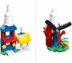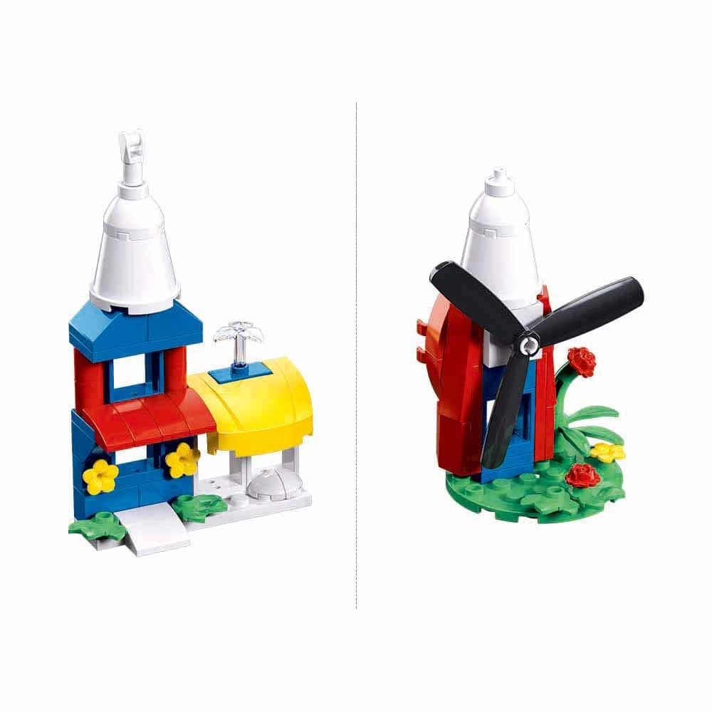 Egyetlen készletből változatos modelleket építhetsz – virágos házikót és forgó lapátokkal ellátott szélmalmot is. Kreatív szórakozás, ami nem unalmasodik meg.