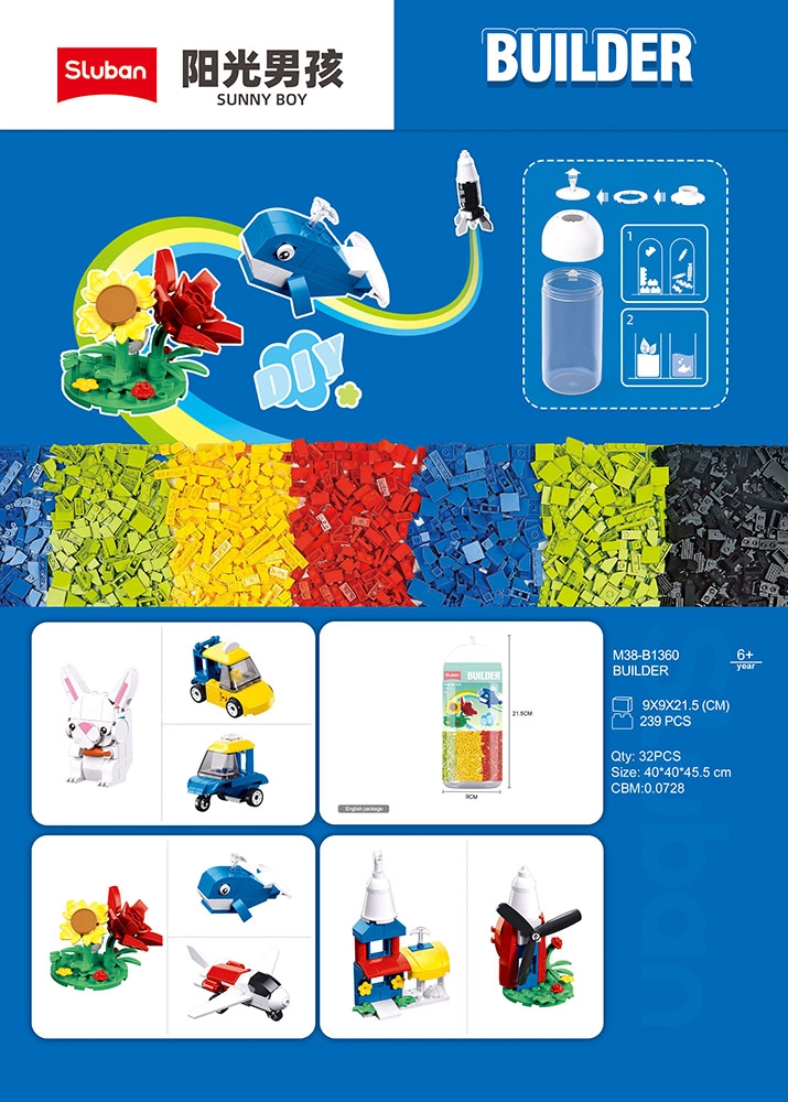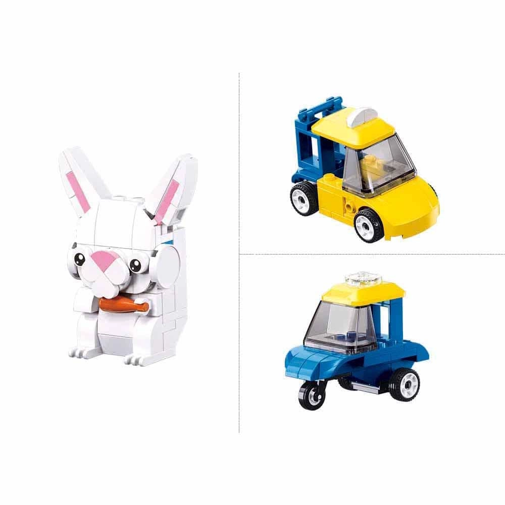 A Sluban Builder 6 az 1-ben építőkészlet egyszerre nyújt szórakozást és tanulást. Egy készletből többféle modellt hozhatsz létre – a repülőtől és járművektől kezdve a nyuszin, virágokon át egészen kis jelenetekig. A LEGO, COBI és Mega Bloks kompatibilitásnak köszönhetően könnyedén bővítheted az építményeidet és új ötleteket valósíthatsz meg.