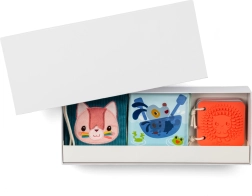 A szettben három különböző könyv található: egy puha képes az első nézegetéshez, egy fürdő vízálló kivitelben a játékos pancsoláshoz, valamint egy szilikon a biztonságos rágcsáláshoz és tapintásos felfedezéshez. Kompakt méreteinek köszönhetően a legapróbb kezek is könnyen tarthatják.