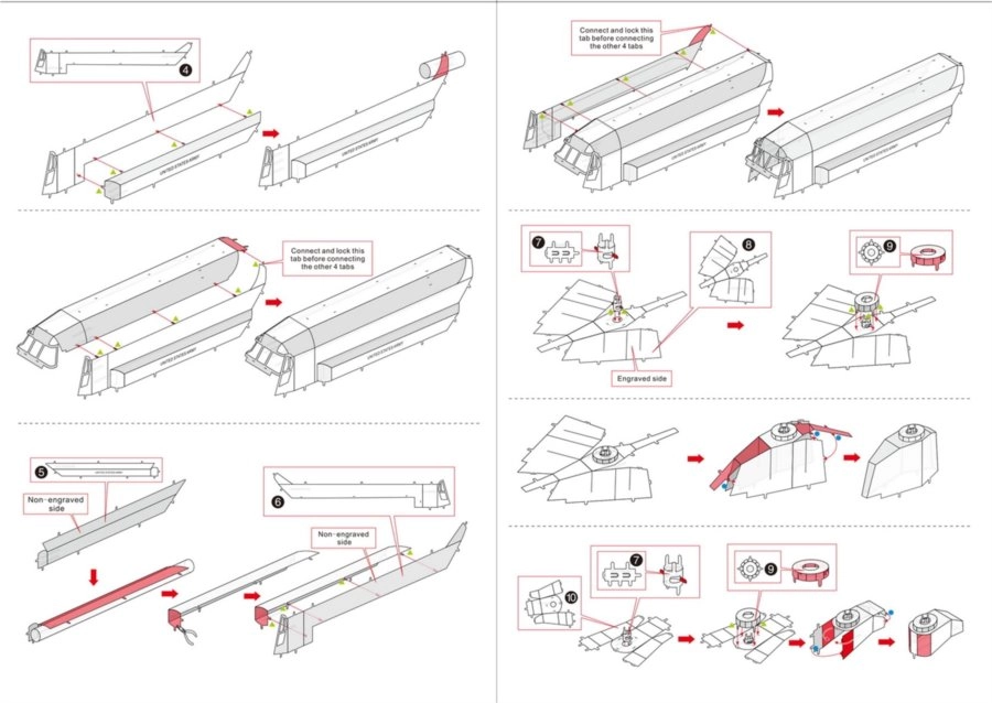 Az alkatrészek zárakkal és visszahajtott pöckökkel kapcsolódnak. Kis laposfogó és csípőfogó használata ajánlott (nem tartozék).