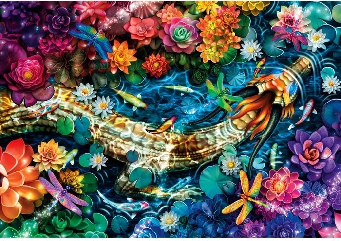 Elegáns kirakó koi-tó motívummal, amely örömet szerez minden nyugalmat és természetet kedvelőnek. 1000 darab kellemes kihívást, precíz vágást és minőségi, élénk színű nyomatot kínál. Összeállítva kb. 70 × 50 cm méretű kép készül, amely ideális keretezéshez.